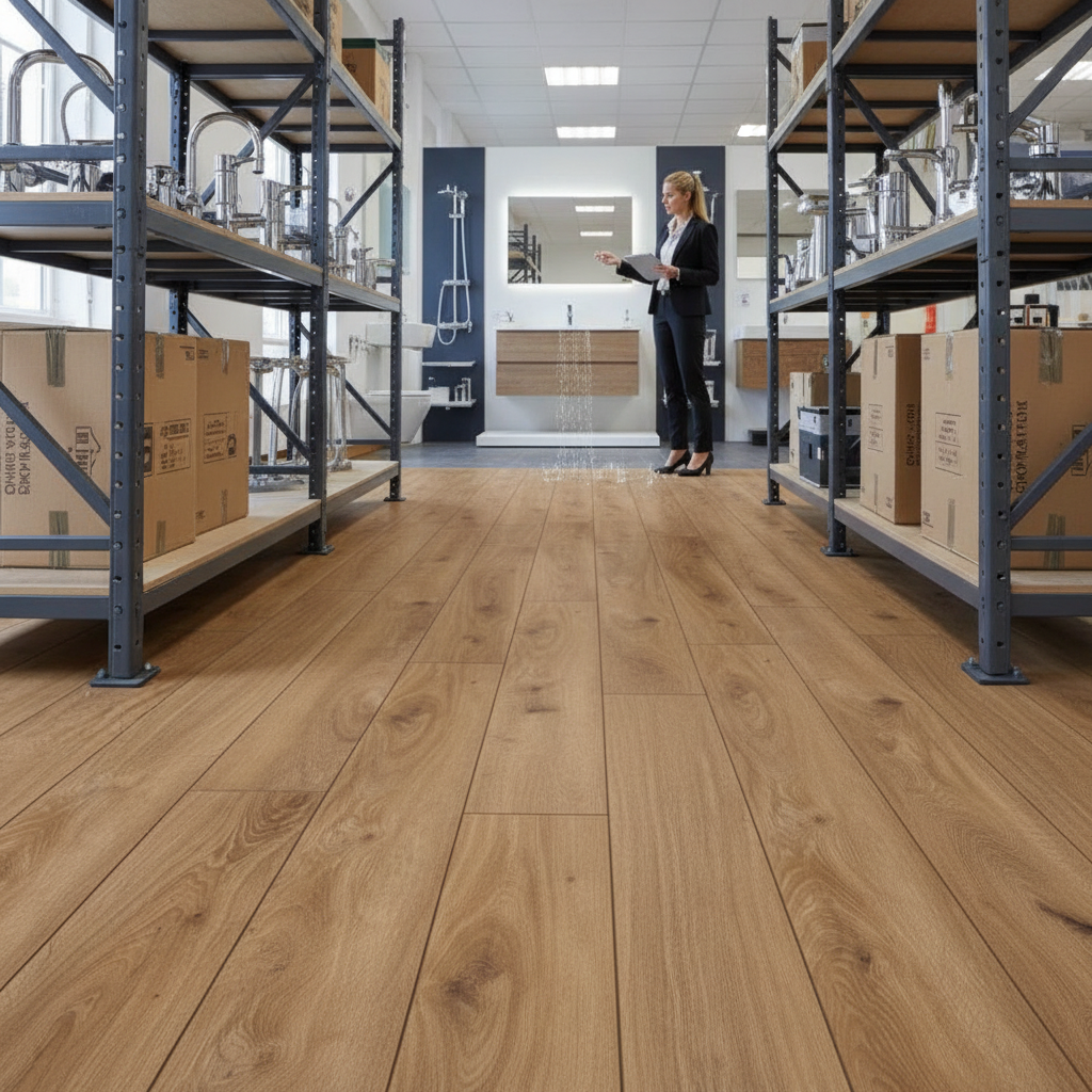This Premium laminate flooring offers an elegant choice with a natural wood imitation design, available in a wide variety of colors. It is a popular selection for various interior styles, whether traditional or imaginative.