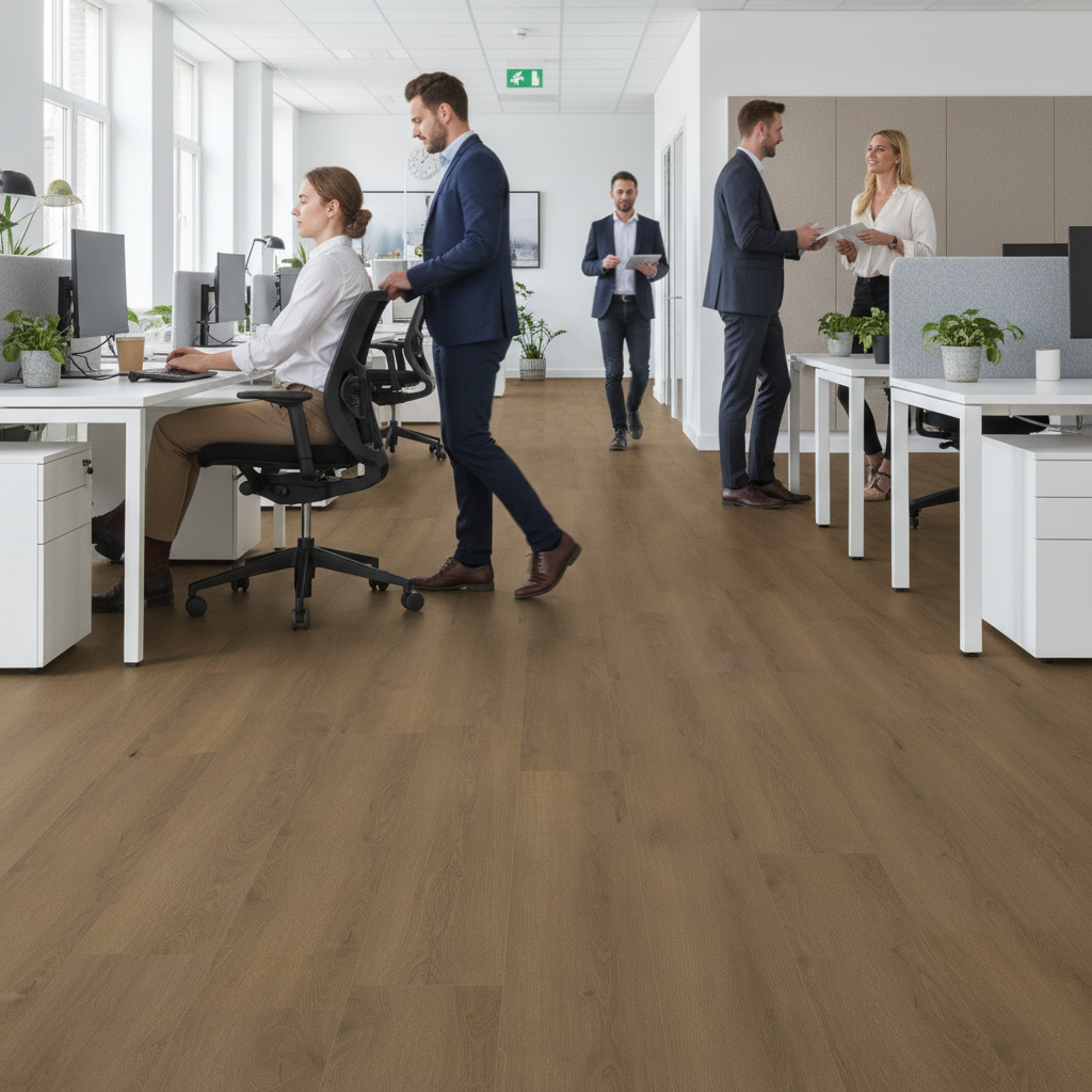 This laminate flooring is rated AC4 (Class 32), making it suitable for both residential and high-traffic commercial environments. -