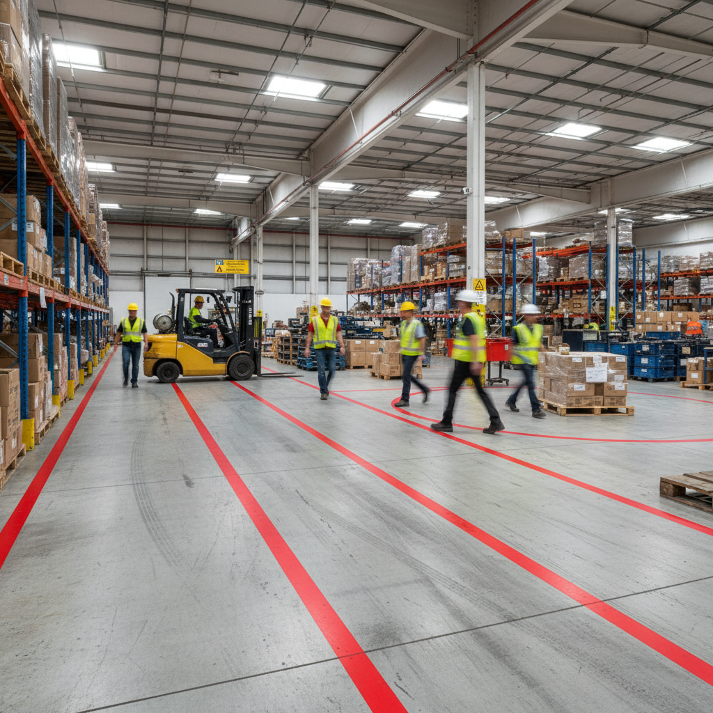 - Custom Sizes & Formats: Available in widths of 50mm, 75mm, or 100mm (30m rolls), as well as pre-cut shapes, arrows, numbers, and letters. Custom aisle markings can be tailored to your specific layout.