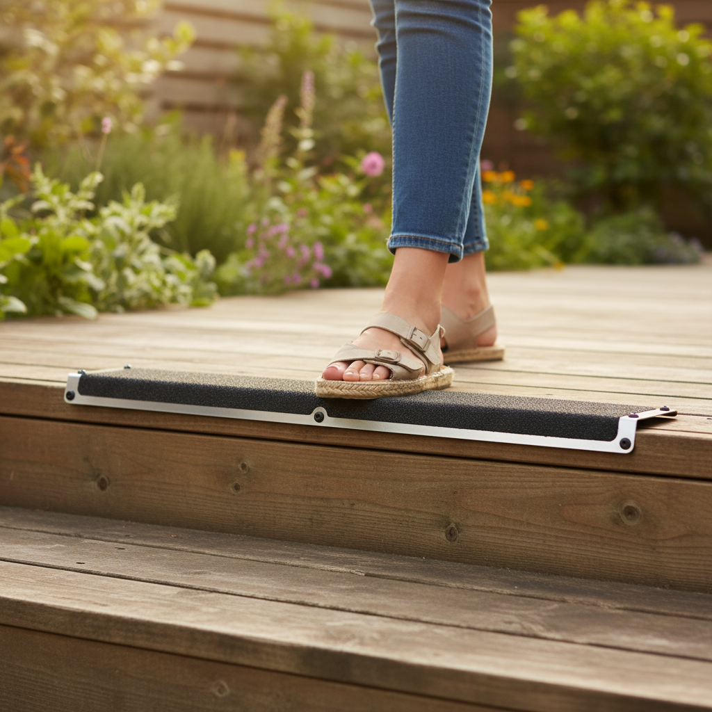 Bolt Down Plates are ideal for providing a safe and stable anti-slip installation on unstable surfaces, such as sodden timber, flaking or saturated concrete, commonly found on marine jetties, garden steps, and concrete paths prone to icing over in winter. Unlike most materials that require adhesive and a sound substrate, Bolt Down Plates screw into place with mechanical fixings and are manufactured from 1.6mm weatherproof aluminium, ensuring durability in even the most challenging environmental conditions.