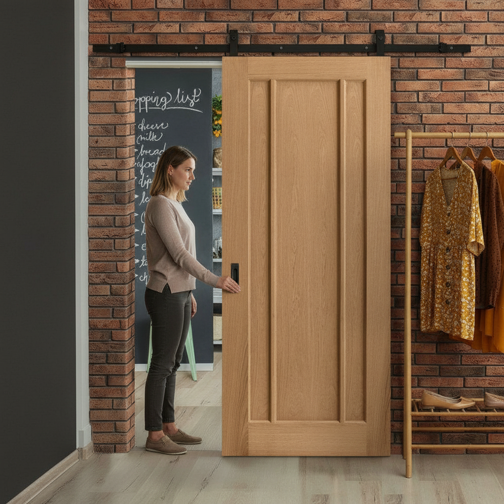 - Effortless Functionality: A well-crafted steel black sliding door track, mounted above the door, completes the design, offering smooth operation and a contemporary touch.