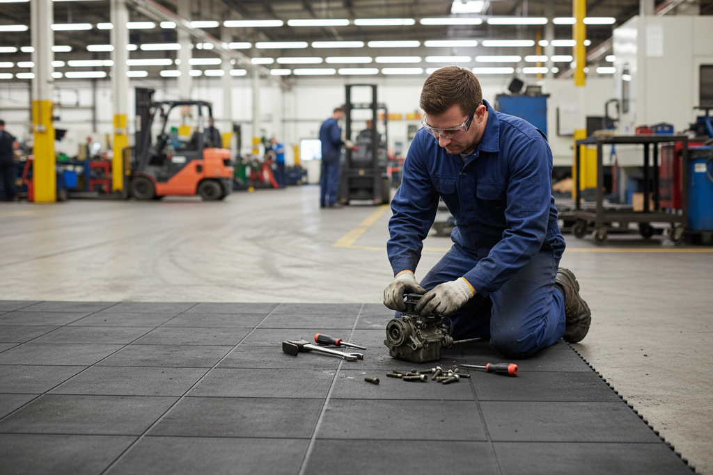 The Premium Modular Anti-Fatigue Matting System is expertly designed to provide ergonomic comfort and safety in various industrial applications. Ideal for heavy-duty, manufacturing, or dry industrial areas, this matting system features a textured surface that ensures excellent anti-slip protection while promoting comfort for those who stand for extended periods.