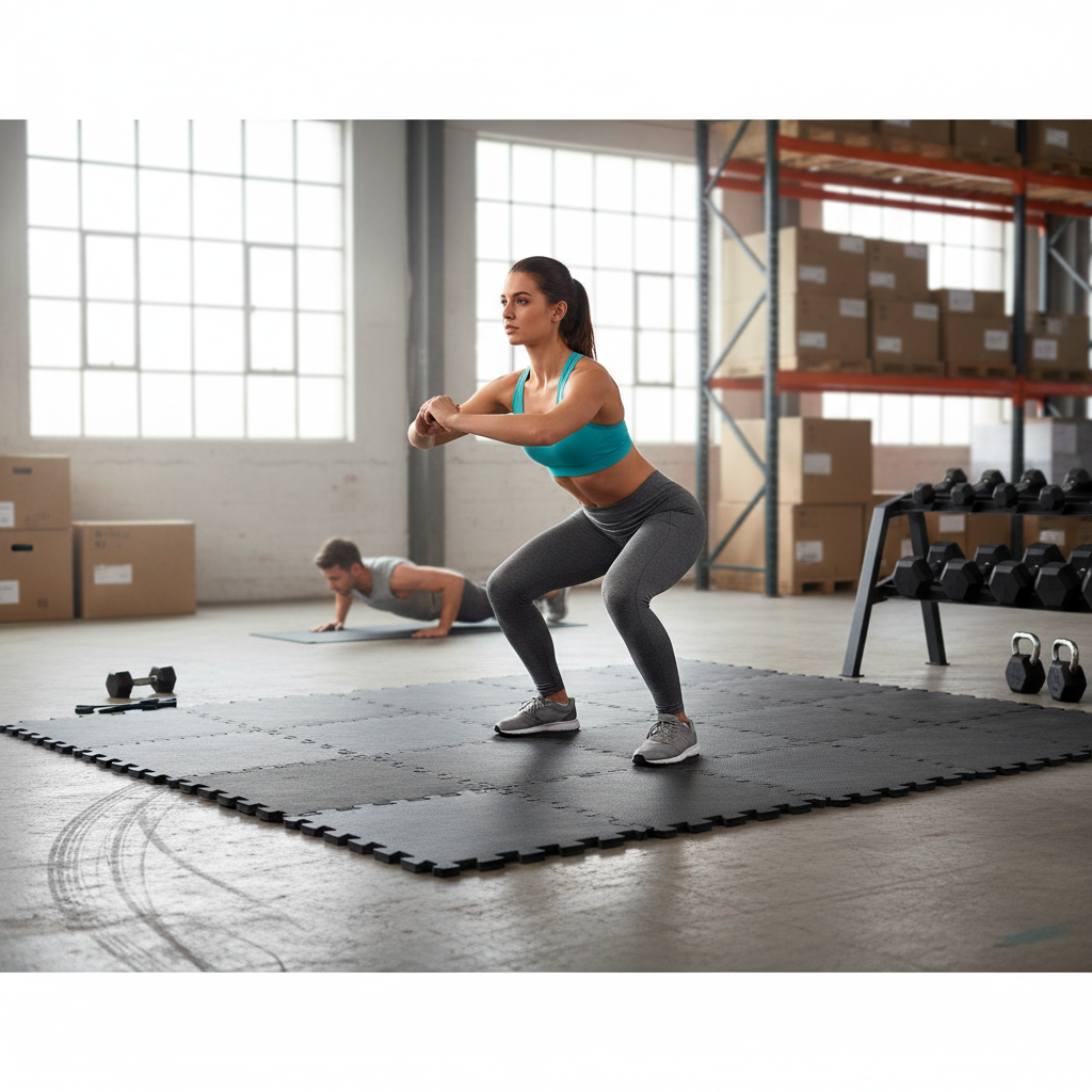 This Premium Interlocking Soft Foam Floor Mat Set includes 18 protective EVA puzzle tiles designed for optimal floor protection. These mats shield your flooring from scratches, dents, sweat, and noise, making them an ideal choice for gyms, exercise areas, and home fitness studios.