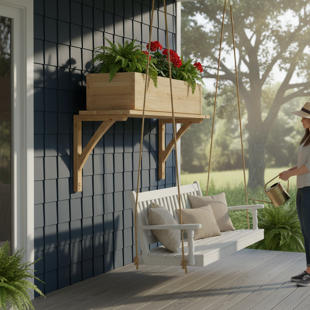 Q: What is the material of the porch bracket?A: The porch bracket is made from high-quality straight grained pine.