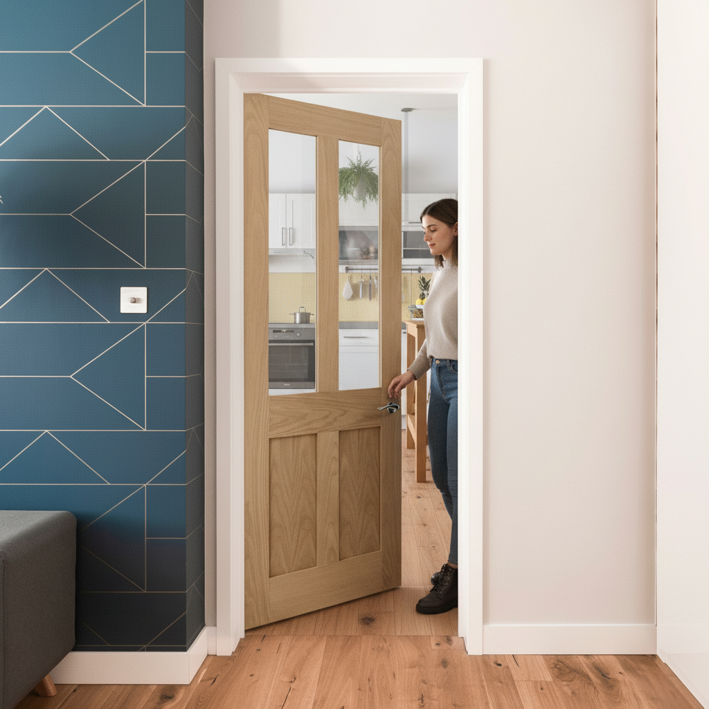 This Premium Internal Victorian Shaker Door offers a sophisticated design that enhances any interior space. Crafted from high-quality oak, this door features a timeless Victorian design with two glazed panes of 4mm single glazed clear glass, providing a stylish and functional solution for your home.