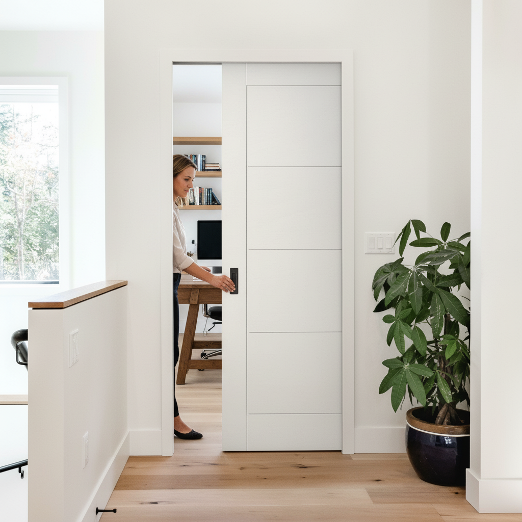 - What is the primary benefit of a pocket door? Pocket doors save space and provide a streamlined look.