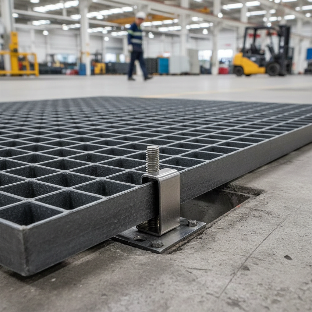 Whether you’re installing 25mm, 38mm, or 50mm GRP panels, our M Clips ensure a tight, flush fit that reduces movement and prevents trip hazards. Ideal for commercial walkways, stair treads, service platforms, and access routes.