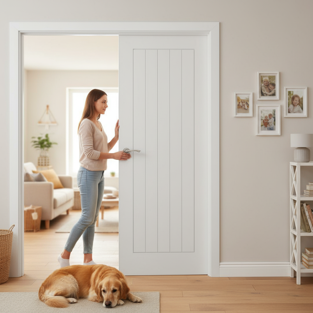 Introduce modern farmhouse charm to your interiors with the Premium White Internal Moulded Smooth Cottage 5 Panel Door. This door features a clean, smooth texture and a timeless 5-panel design that complements a wide range of décor styles. Delivered white primed, it is ready for painting to suit your personal taste. Built with a standard core for durability and backed by a lifetime guarantee, it is a practical and stylish choice for any home.