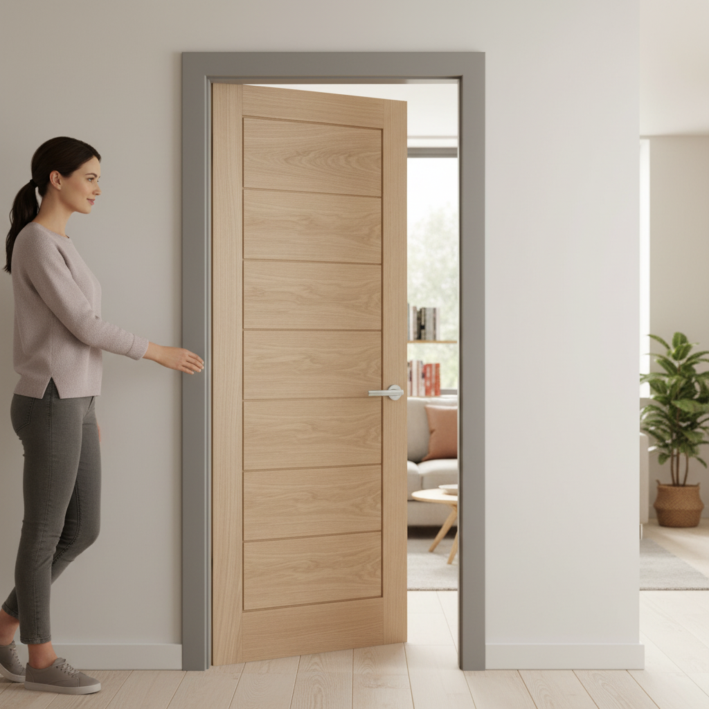 Enhance your interior with the premium unfinished internal oak horizontal door. This door features a minimalist design with horizontal lines that add a modern touch to the classic cottage style. The unfinished oak surface is ready for staining or painting, offering you the flexibility to customise its appearance to match or contrast with your existing decor.
