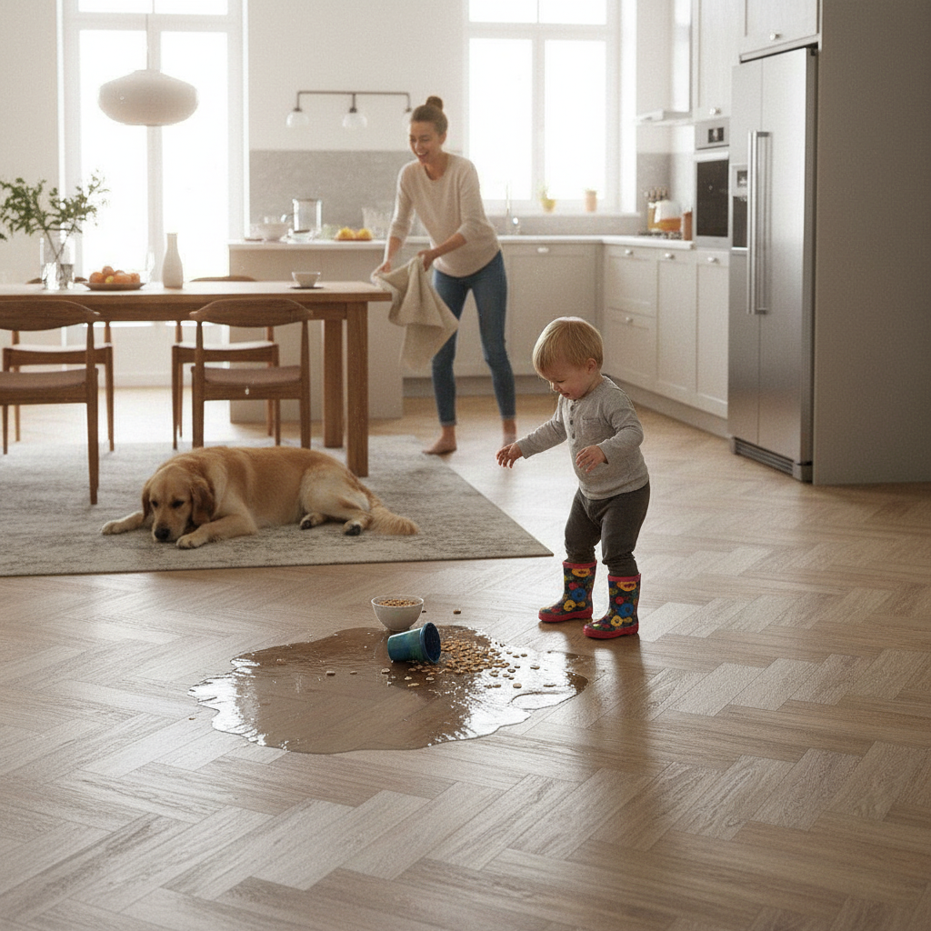 Featuring high-performance Aqua-0 technology, this flooring provides an impermeable water-resistant surface, combined with a hermetic air-tight click system. This ensures the floor remains safe for up to 72 hours in the event of a spill, giving you extra peace of mind.