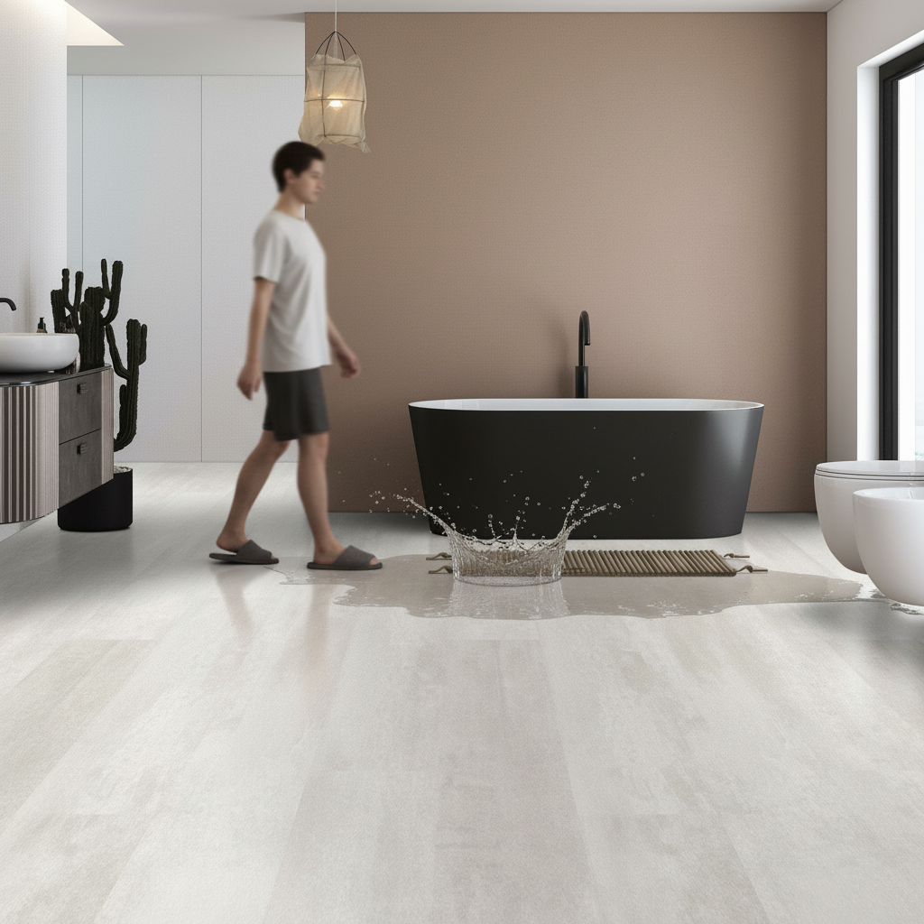Yes, this laminate flooring is designed with waterproof technology, making it suitable for bathrooms and other moisture-prone areas. -