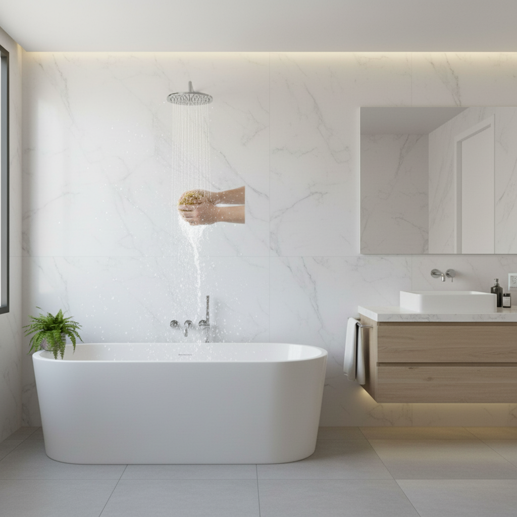 The premium white marble PVC wall panelling offers a sleek and elegant solution for various spaces. This product is designed to be 100% fully waterproof, ensuring durability and reliability in wet environments. The mould-resistant surface enhances its longevity, making it an ideal choice for areas prone to moisture.