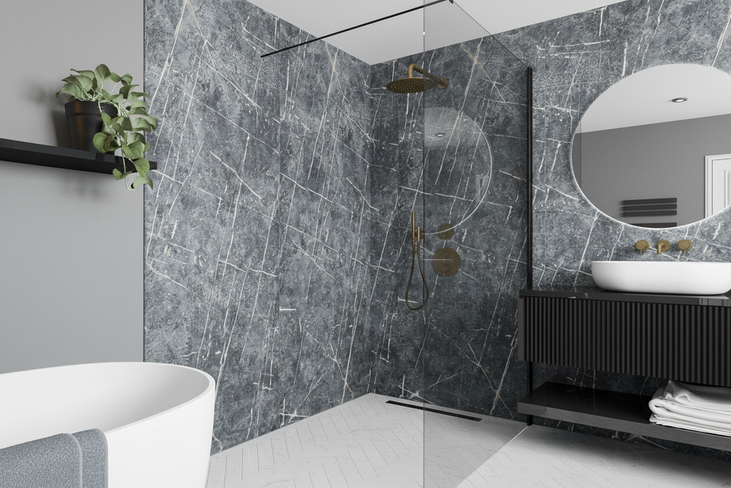 This premium wall panelling offers a 100% fully waterproof system, ensuring exceptional durability and material quality for any professional installation. The striking blue hue brings a sophisticated touch to interiors, enhancing the aesthetic appeal while maintaining robust water-resistance ideal for high-moisture environments.