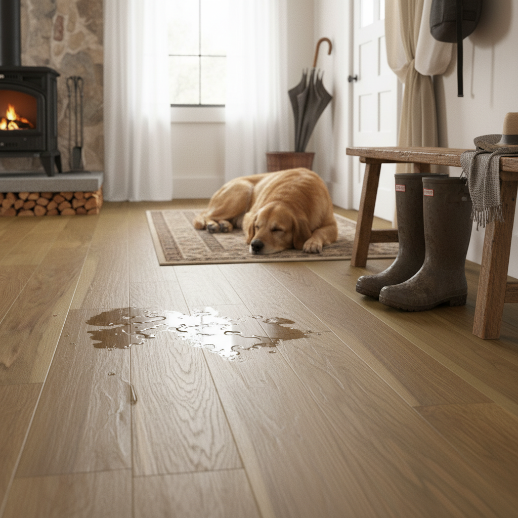 Crafted for both elegance and endurance, this Premium Waterproof Engineered Real Wood Flooring offers the timeless beauty of real oak with the revolutionary benefit of full waterproof protection. Its natural wood grain, finished in a sophisticated UV matt coating, brings warmth and character to any space. The advanced rigid core technology ensures exceptional stability underfoot, making this flooring ideal for high-traffic areas.