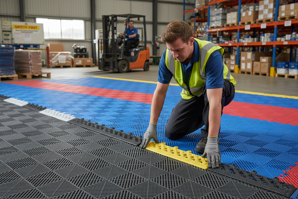Professional PVC bevel edge tiles enhance safety by minimizing the risk of trips and falls while providing an aesthetically pleasing look. The bevels highlight the edges of the mat and ensure compatibility with wheelchairs, pushchairs, and trolleys. This versatile interlocking matting system features bevelled edges and a high grip surface, making it suitable for a wide range of applications.