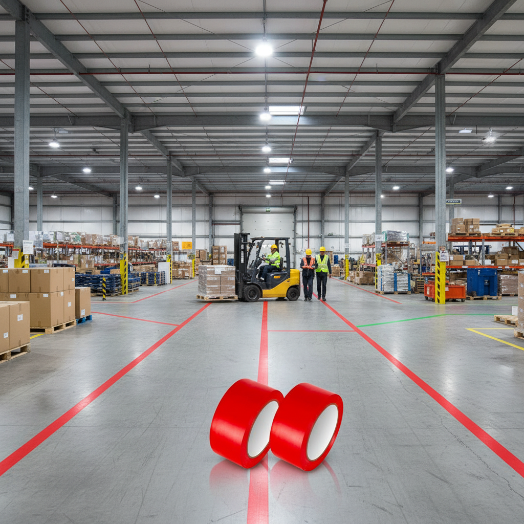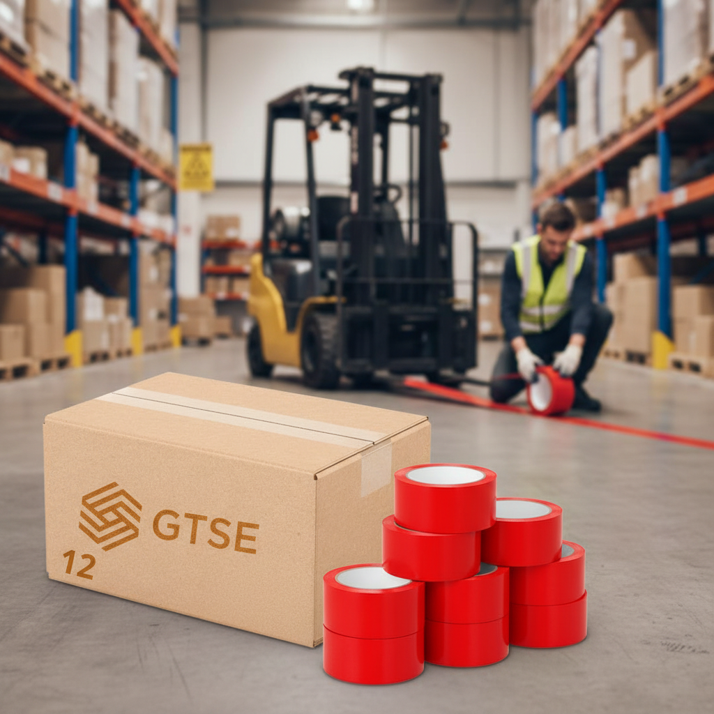 Upgrade your workspace safety and organization with this bundle of 12 premium red PVC floor marking tapes, perfect for warehouses, gyms, dance studios, and sports facilities.
