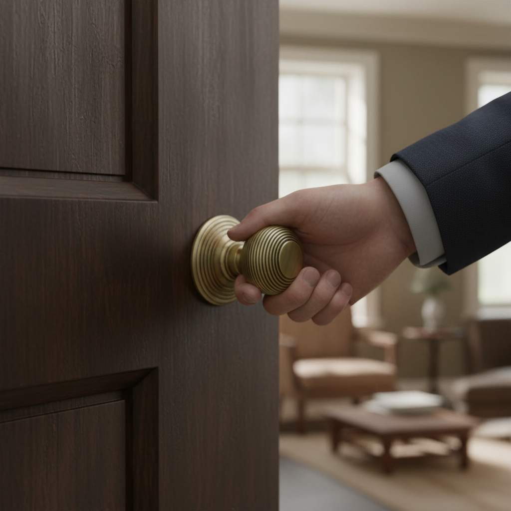 This Premium Round Reeded Mortice Door Knob features a 50mm round rose design with an elegant Antique Brass finish. It is part of a traditional collection that combines classic styling with modern manufacturing techniques to ensure high quality and durability.