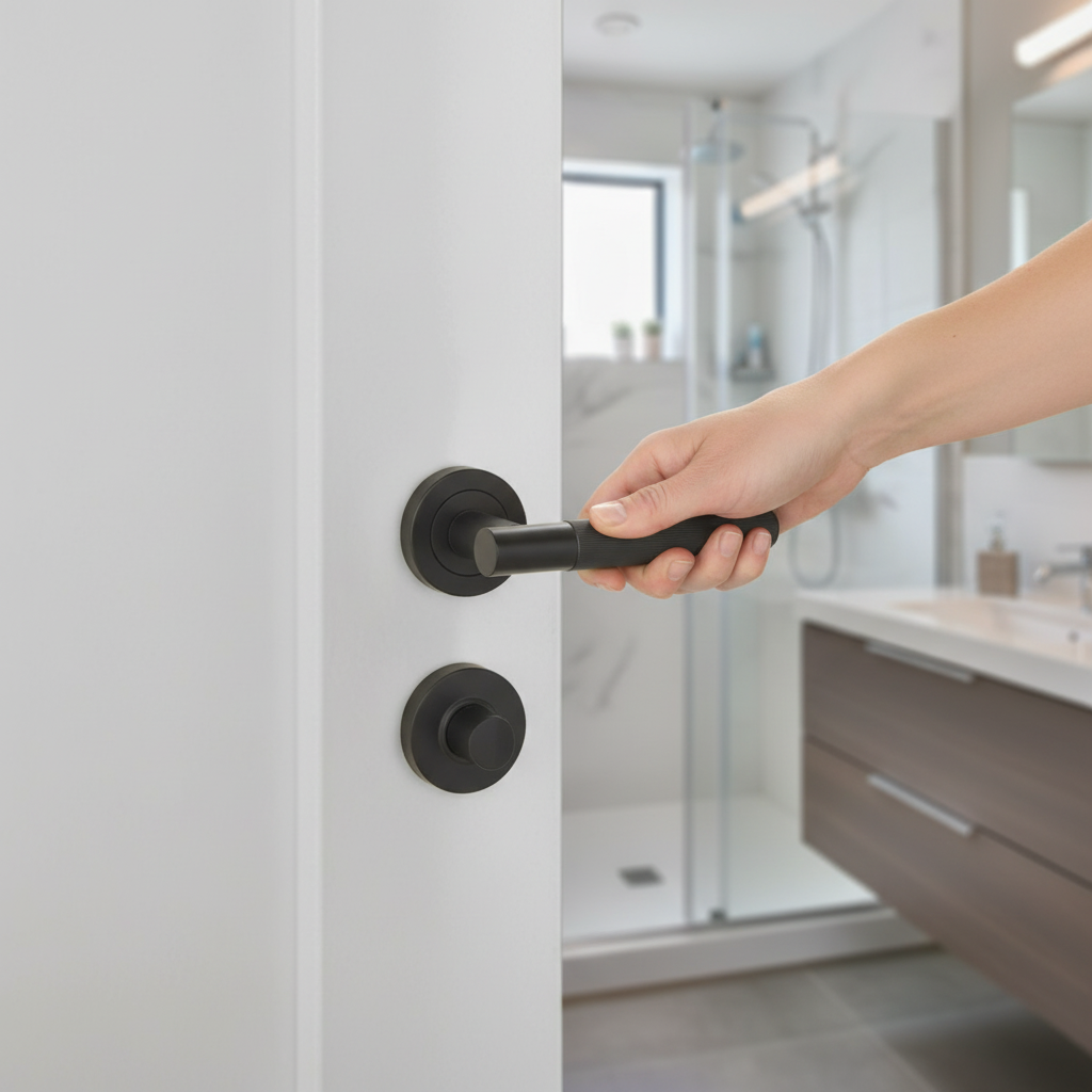 - Matt Black Finish: Offers a bold, modern appearance that enhances bathroom door aesthetics.