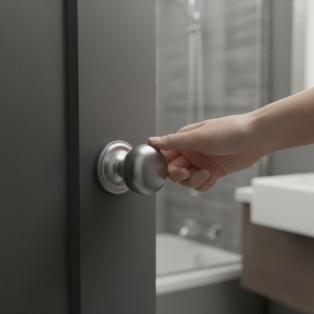 - What is included in the set? The set includes two mushroom-shaped knobs, two ball bearing hinges, a secure bathroom lock, and a WC turn & release.