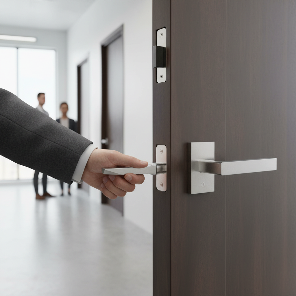 This Premium Slim Square Lever Handle pack in Anthracite grey is the ideal choice for modern industrial doors, featuring an ultra-modern design that complements contemporary decor. This pack contains everything required to enhance your door purchase.